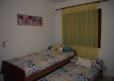 On the ground floor there is a large full family bathroom with shower, toilet and washbasin and a sofa bed for 2 persons. From the lounge area this leads to the first floor. There is a Twin bedroom with cabin beds 90cm with views of the swimming pool / garden/mountain views. There is access leading to the private roof terrace 38m2 (There is a key to lock this door) Bring your binoculars as the scenery is amazing.